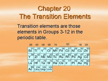 Chapter 20 The Transition Elements - PowerPoint PPT Presentation