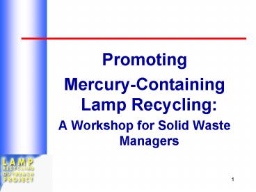 - Promoting Mercury-Containing Lamp Recycling A