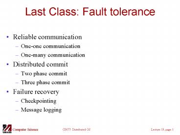 Title: Last Class: Fault tolerance
