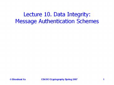 <Notice: Removed> Lecture 10. Data Integrity: Message Authentication Schemes PowerPoint PPT Presentation