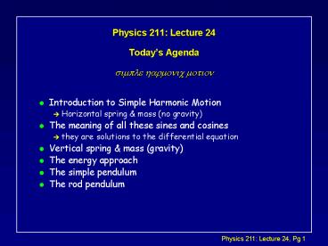Title: Physics 211: Lecture 24 Todays Agenda simple harmonic motion