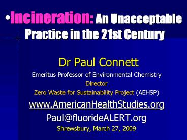 Title: Incineration: An Unacceptable Practice in the 21st Century