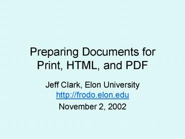 Preparing Documents for Print, HTML, and PDF PowerPoint PPT Presentation