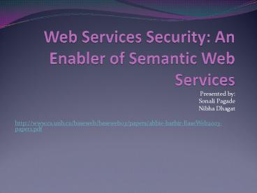 Web Services Security: An Enabler of Semantic Web Services PowerPoint PPT Presentation