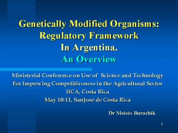 Title: Genetically Modified Organisms: Regulatory Framework In Argentina' An Overview