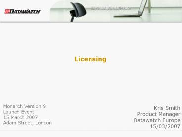 Monarch Version 9 Launch Event 15 March 2007 Adam