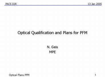 2005.Still compatible with PFM schedule. - Schedule extremely tight - no margin. For the PFM