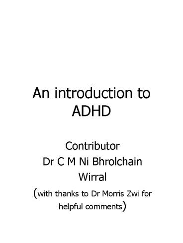 An introduction to ADHD PowerPoint PPT Presentation