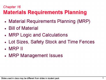 and materials required to produce end items. - Determines exact unit numbers needed.