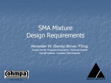 Designing Stone Matrix Asphalt (SMA) - MTO OPSS 1151 (Nov. 2004)Material Specification