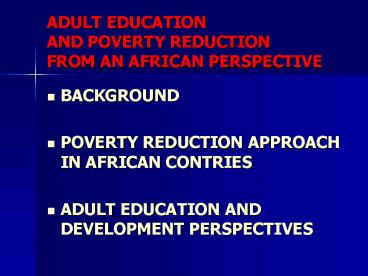 ADULT EDUCATION AND POVERTY REDUCTION FROM AN AFRICAN PERSPECTIVE PowerPoint PPT Presentation