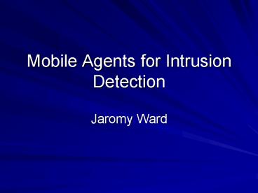 Mobile Agents for Intrusion Detection PowerPoint PPT Presentation