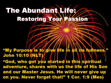The Abundant Life: Restoring Your Passion PowerPoint PPT Presentation