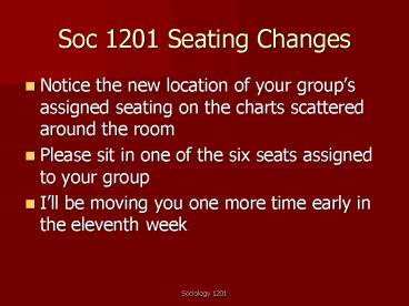 <Notice: Removed> Soc 1201 Seating Changes PowerPoint PPT Presentation