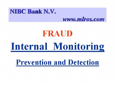 NIBC Bank N'V' www'mlros'com PowerPoint PPT Presentation