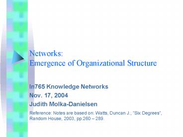 <Notice: Removed> Networks: Emergence of Organizational Structure PowerPoint PPT Presentation