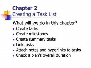 duration and resource requirements. - For this lesson, create tasks in the Gantt Chart