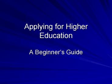 <Notice: Removed> Applying for Higher Education PowerPoint PPT Presentation