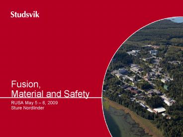 employed by F4E) - Studsvik will focus on the support for ITER via