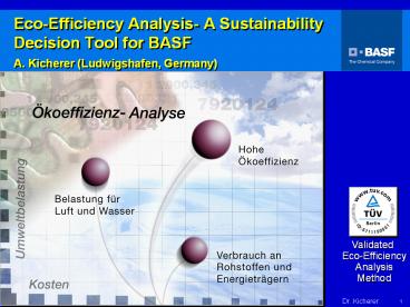 Title: Eco-Efficiency Analysis- A Sustainability Decision Tool for BASF A. Kicherer (Ludwigshafen, Germany)