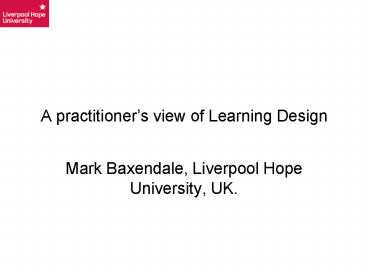 A practitioners view of Learning Design PowerPoint PPT Presentation