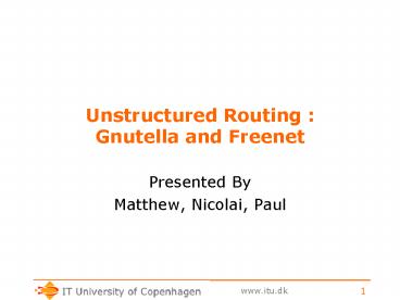 Unstructured Routing : Gnutella and Freenet PowerPoint PPT Presentation