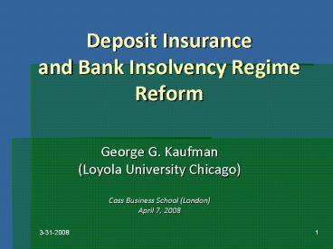 Title: Deposit Insurance and Bank Insolvency Regime Reform