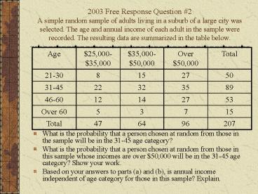 2003 Free Response Question 2A simple random