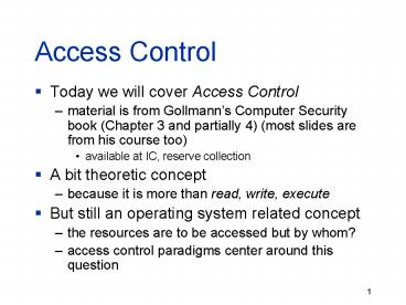 - Today we will cover Access Control