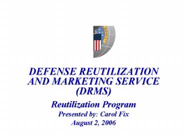 Title: DEFENSE REUTILIZATION AND MARKETING SERVICE DRMS