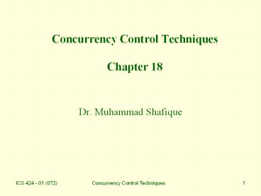 <Notice: Removed> Concurrency Control Techniques Chapter 18 PowerPoint PPT Presentation