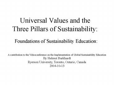 Title: Universal Values and the Three Pillars of Sustainability: