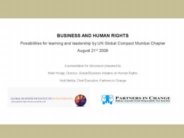 1BUSINESS AND HUMAN RIGHTS Possibilities for