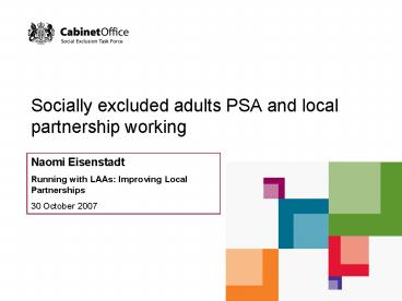 identify key priorities around social exclusion - Holding a series of regional workshops on the PSA