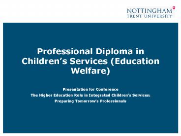 Professional Diploma in Childrens Services Education Welfare PowerPoint PPT Presentation