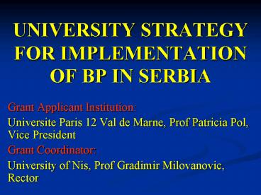UNIVERSITY STRATEGY FOR IMPLEMENTATION OF BP IN SERBIA PowerPoint PPT Presentation