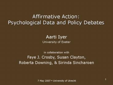 Title: Affirmative Action: Psychological Data and Policy Debates