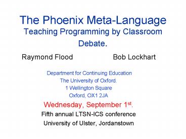 The Phoenix MetaLanguage Teaching Programming by Classroom Debate' PowerPoint PPT Presentation