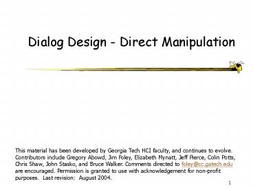 Dialog Design Direct Manipulation PowerPoint PPT Presentation