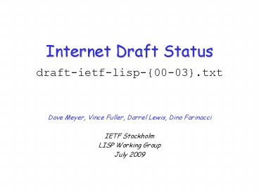Internet Draft Status draftietflisp0003'txt PowerPoint PPT Presentation