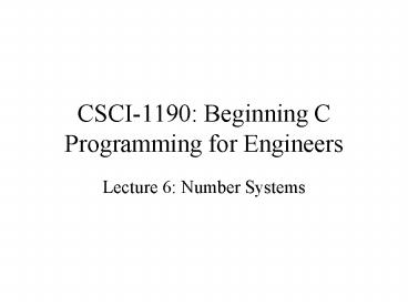 CSCI1190: Beginning C Programming for Engineers PowerPoint PPT Presentation