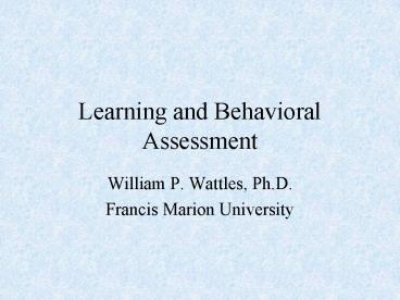 Learning and Behavioral Assessment PowerPoint PPT Presentation