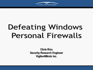 1Defeating Windows Personal Firewalls