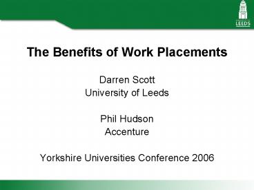 The Benefits of Work Placements PowerPoint PPT Presentation