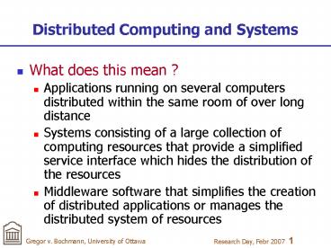 Distributed Computing and Systems PowerPoint PPT Presentation