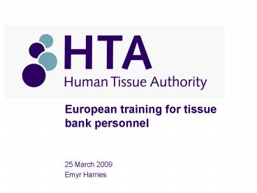 European training for tissue bank personnel PowerPoint PPT Presentation
