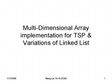 MultiDimensional Array implementation for TSP PowerPoint PPT Presentation