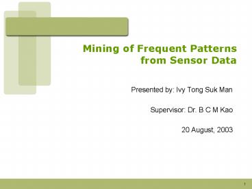 Mining of Frequent Patterns from Sensor Data PowerPoint PPT Presentation