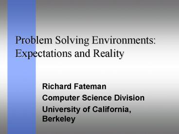 Problem Solving Environments: Expectations and Reality PowerPoint PPT Presentation