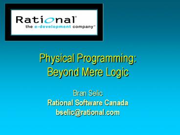 Title: Bran Selic Rational Software Canada bselic@rational.com